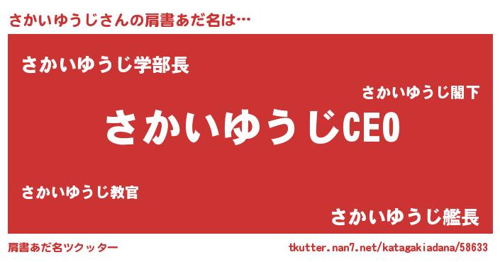 | ヒーロー風カッコイイあだ名 | 『スーパーサカイユウジ』『仮面サカダー』 |