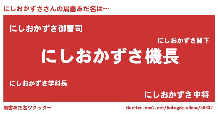 | 欧米人風あだ名 | 『にしおかずさ・ステッグマイヤー』 |
