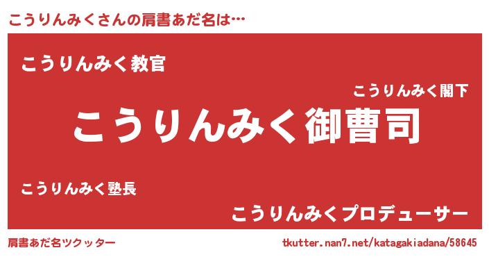 | 胡散臭い通販商品みたいなあだ名 | 『モテモテ間違いなし霊験あらたかなお札…その名も「こうりんみく」』 |