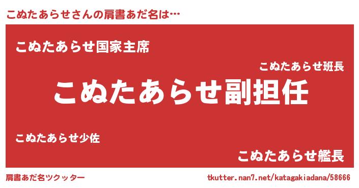 | 意味不明あだ名 | 『永久保存こぬたあらせ』 |