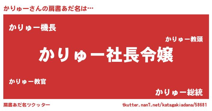 | 女子向けラノベタイトル風あだ名 | 『(仮)かりゅーのやんごとなき事情』 |