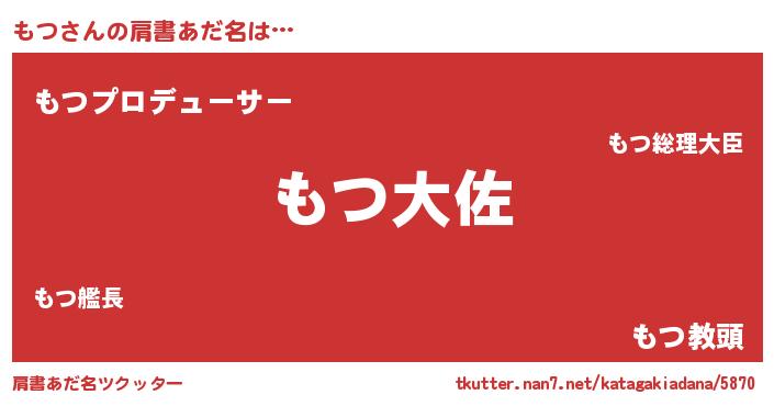 | 男性向けラノベタイトル風あだ名 | 『モツスレイヤー』『はたらくもつさま!』 |