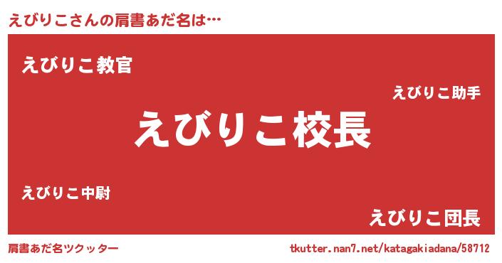 | 意味不明あだ名 | 『永久保存えびりこ』 |