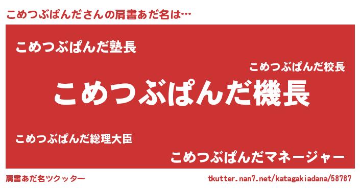 | 萌えアニメ | 主人公(こめつぶぱんだ)のあだ名『こめつぶぱんだにゃん』 |