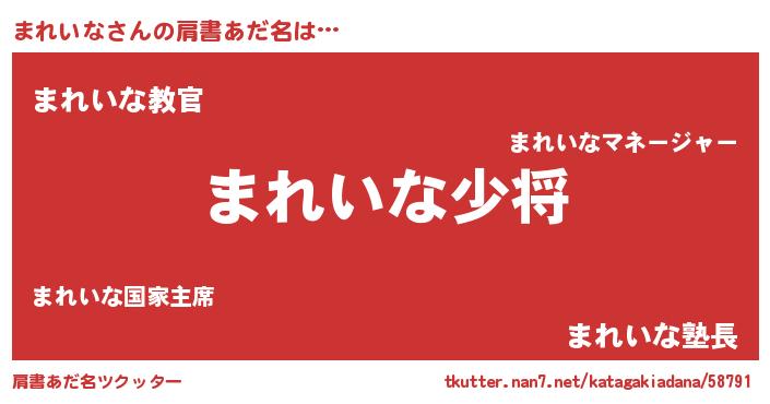 | 恥ずかしいあだ名 | 『マレリンリン』『まれっちょ』 |