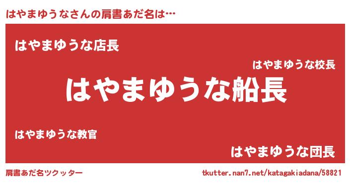 | ヒーロー風カッコイイあだ名 | 『スーパーハヤマユウナ』『黄金騎士ハヤ』 |