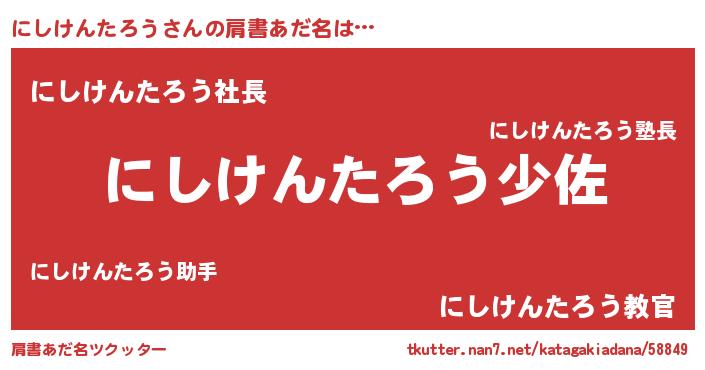 | ヒーロー風カッコイイあだ名 | 『スーパーニシケンタロウ』 |