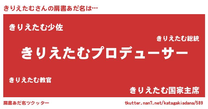 | 男性向けラノベタイトル風あだ名 | 『きりえたむに滅ぼされるだけの簡単なお仕事です』 |