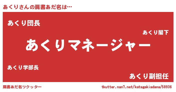 | ヘコむあだ名 | 『あくお』『あくり(笑)』『酢こんぶ』 |