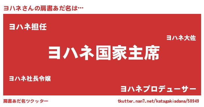 | ファンタジー風あだ名 | 『エターナルヨハネー』『ヨハディッシュ』 |