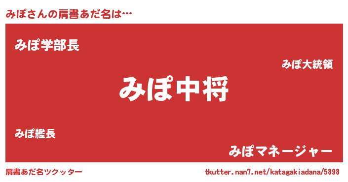 | 男性向けラノベタイトル風あだ名 | 『ミポスレイヤー』『はたらくみぽさま!』 |