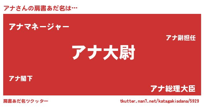 | 男性向けラノベタイトル風あだ名 | 『アナスレイヤー』『はたらくアナさま!』 |