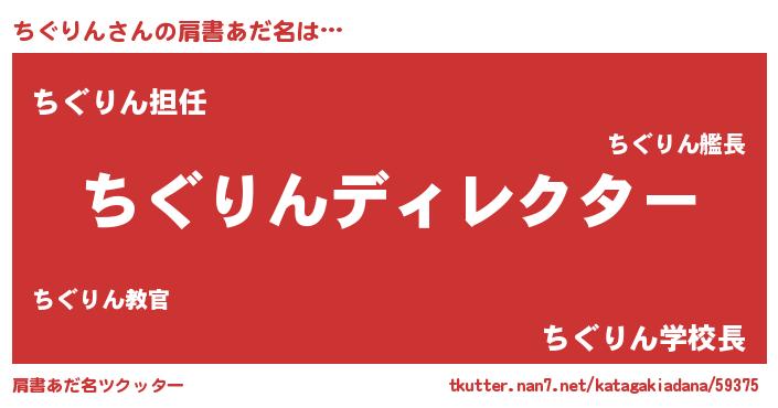 | 男性向けラノベタイトル風あだ名 | 『ちぐりんに滅ぼされるだけの簡単なお仕事です』 |
