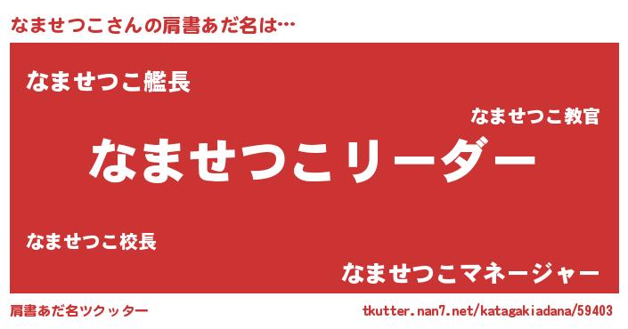 | 男性向けラノベタイトル風あだ名 | 『なませつこの嫁は女の子じゃないと思った?』 |