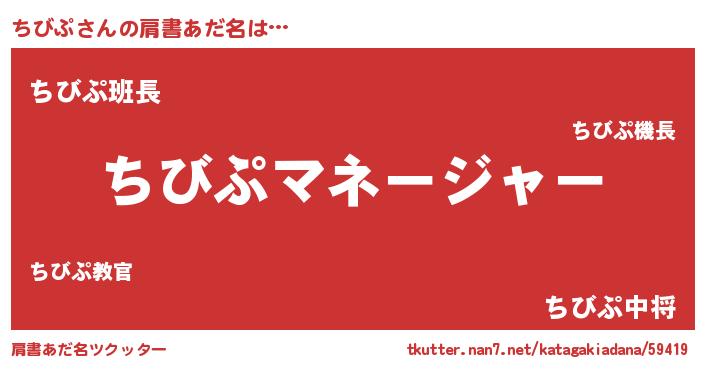 | 男性向けラノベタイトル風あだ名 | 『はたらくちびぷさま!』 |