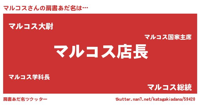 | 男性向けラノベタイトル風あだ名 | 『マルコスアートオンライン』 |