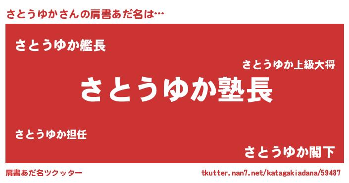 | ヘコむあだ名 | 『さとっぺ』『さとうゆか(爆)』 |