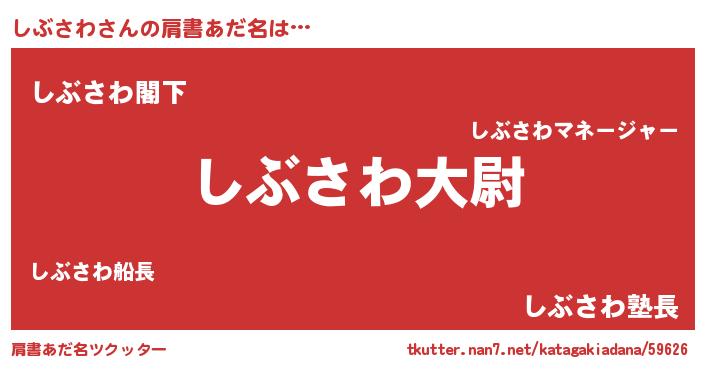 | 男性向けラノベタイトル風あだ名 | 『シブサワスレイヤー』 |