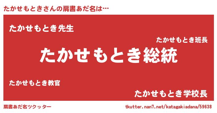 | 意味不明あだ名 | 『自称たかせもとき』 |