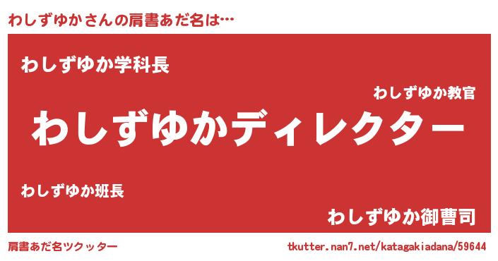 | ヒーロー風カッコイイあだ名 | 『正義の使者わしずゆか』『仮面ワシダー』 |