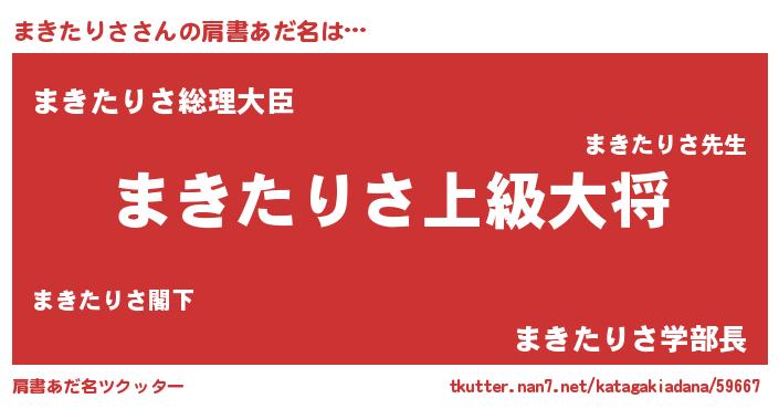 | 男性向けラノベタイトル風あだ名 | 『転生したらまきたりさだった件』 |