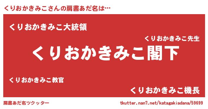 | 男性向けラノベタイトル風あだ名 | 『Re:くりおかきみこから始める異世界生活』 |
