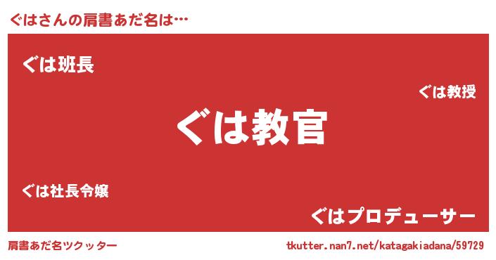 | ピコ太郎風あだ名 | 『グハ四郎』『ググ太郎』『グコ十郎』 |