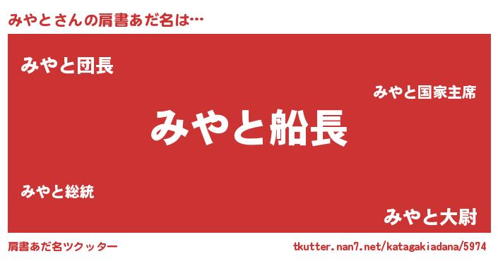 | 欧米人風あだ名 | 『みやと・ステッグマイヤー』 |