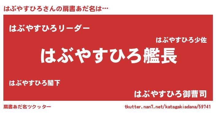 | 意味不明あだ名 | 『とにかく怪しいはぶやすひろ』 |