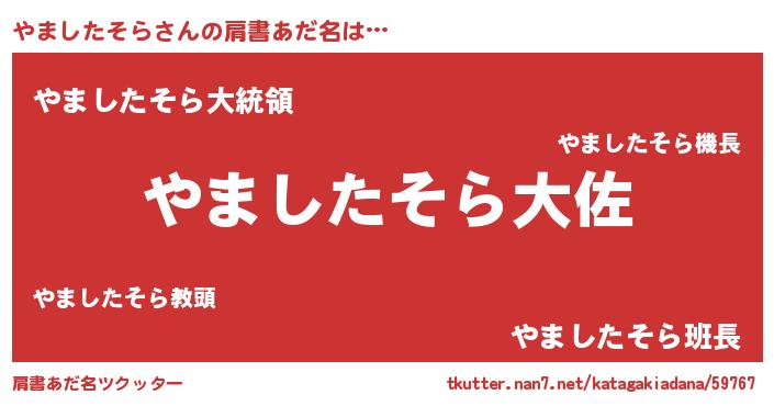 | 女子向けラノベタイトル風あだ名 | 『やましたそらの玉の輿計画!』 |