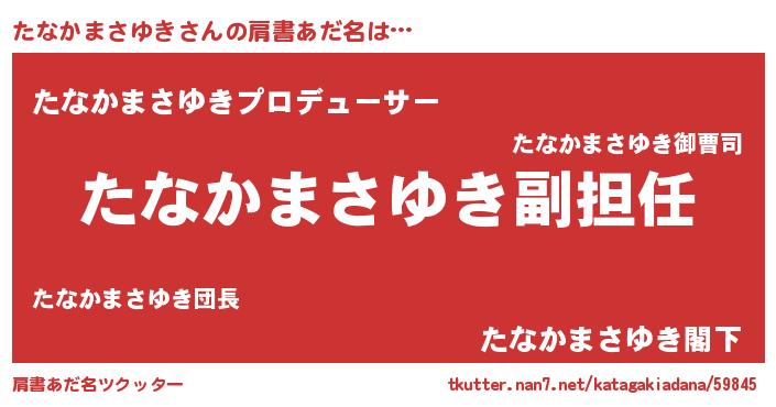 | ヘコむあだ名 | 『たなかまさゆき(遠い目)』『たなもー』 |
