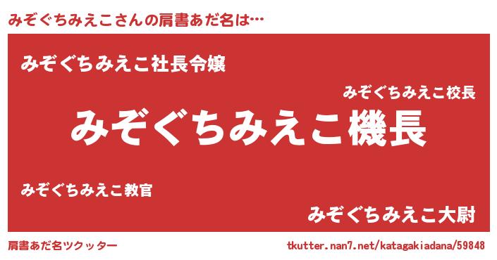 | ヘコむあだ名 | 『みぞもー』『みぞぐちみえこ(苦笑)』 |