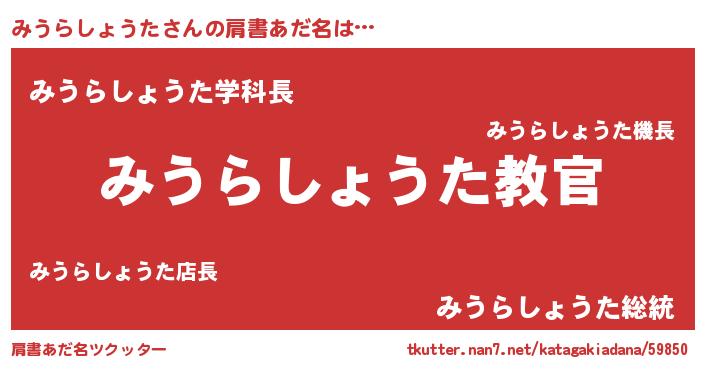 | 意味不明あだ名 | 『住所不定無職みうらしょうた(56歳)』 |