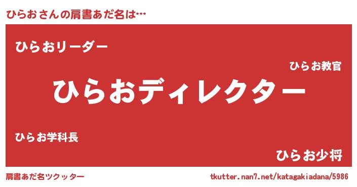 | ポケモン風あだ名 | 『ヒラゴンZ』『ヒヒラオ』『ヒーライ』 |