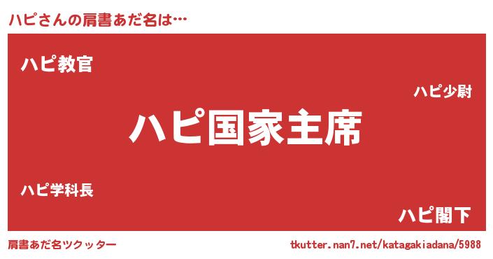 | 欧米人風あだ名 | 『ハピクリステル』『ダレノガレハピ』 |
