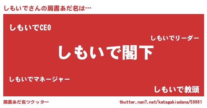 | ヘコむあだ名 | 『しもふぇ~』『しもいで(笑)』 |