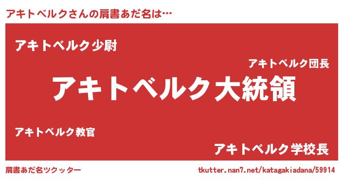 | ヒーロー風カッコイイあだ名 | 『ウルトラアキトベルクマン』 |