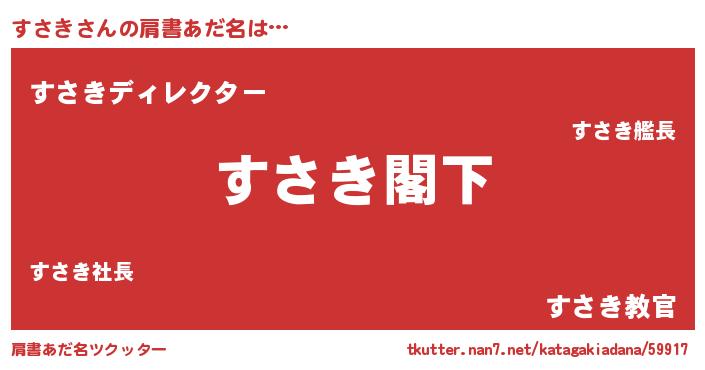 | ヒーロー風カッコイイあだ名 | 『サイバー戦士スサキ』『仮面スサダー』 |