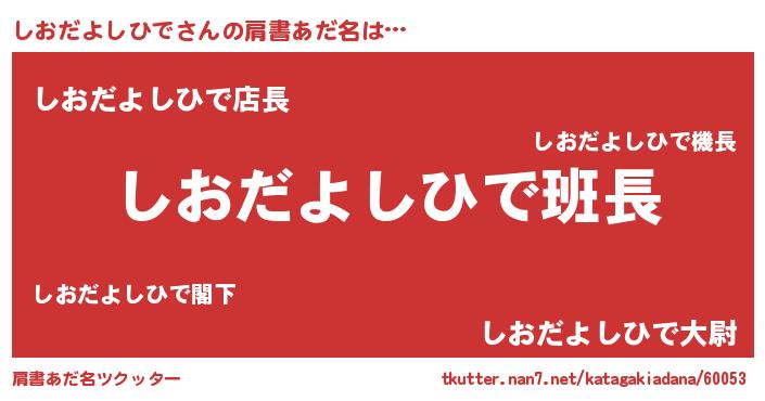 | 男性向けラノベタイトル風あだ名 | 『しおだよしひでの嫁は女の子じゃないと思った?』 |