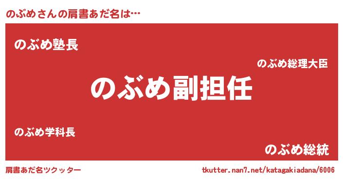 | 女子向けラノベタイトル風あだ名 | 『のぶめの契約王妃』『のぶめ様がみてる』 |