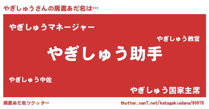 | ポケモン風あだ名 | 『ヤックウザ』『ヤギゴンZ』 |