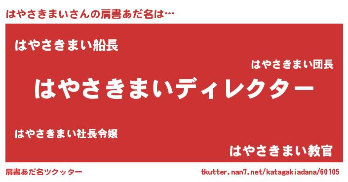 | 男性向けラノベタイトル風あだ名 | 『はやさきまいに滅ぼされるだけの簡単なお仕事です』 |
