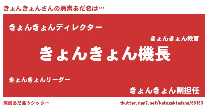 | 男性向けラノベタイトル風あだ名 | 『緋弾のキョンキョン』 |