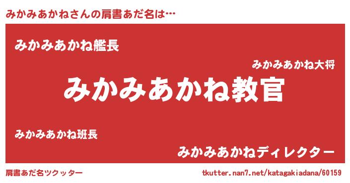 | 男性向けラノベタイトル風あだ名 | 『この素晴らしい世界にみかみあかねを!』 |