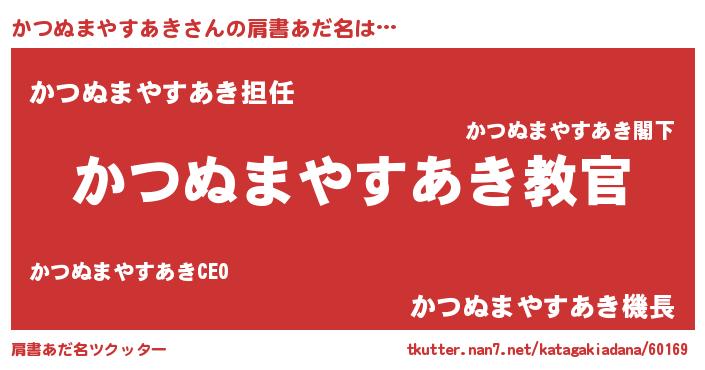 | ヘコむあだ名 | 『かつぬまやすあき(震え声)』『かつもー』 |