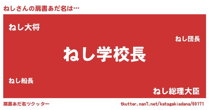 | ヒーロー風カッコイイあだ名 | 『正義の使者ねし』『ウルトラねしマン』 |