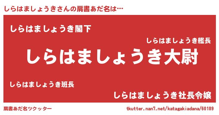 | 女子向けラノベタイトル風あだ名 | 『しらはましょうきの玉の輿計画!』 |