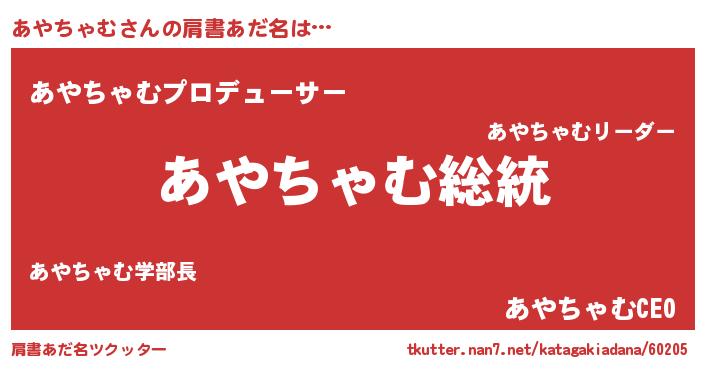 | 欧米人風あだ名 | 『ケンブリッジあやちゃむ』 |