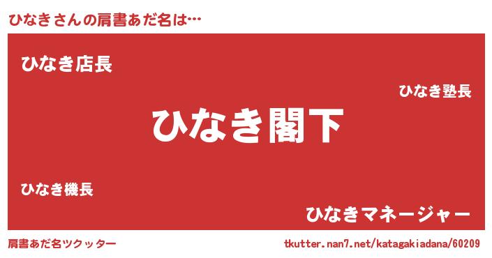 | ヘコむあだ名 | 『ひなふぇ~』『ひな太郎』『つくし』 |