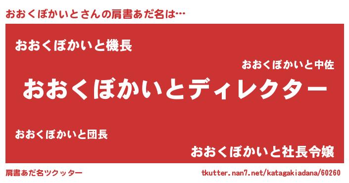 | 男性向けラノベタイトル風あだ名 | 『おおくぼかいとに滅ぼされるだけの簡単なお仕事です』 |